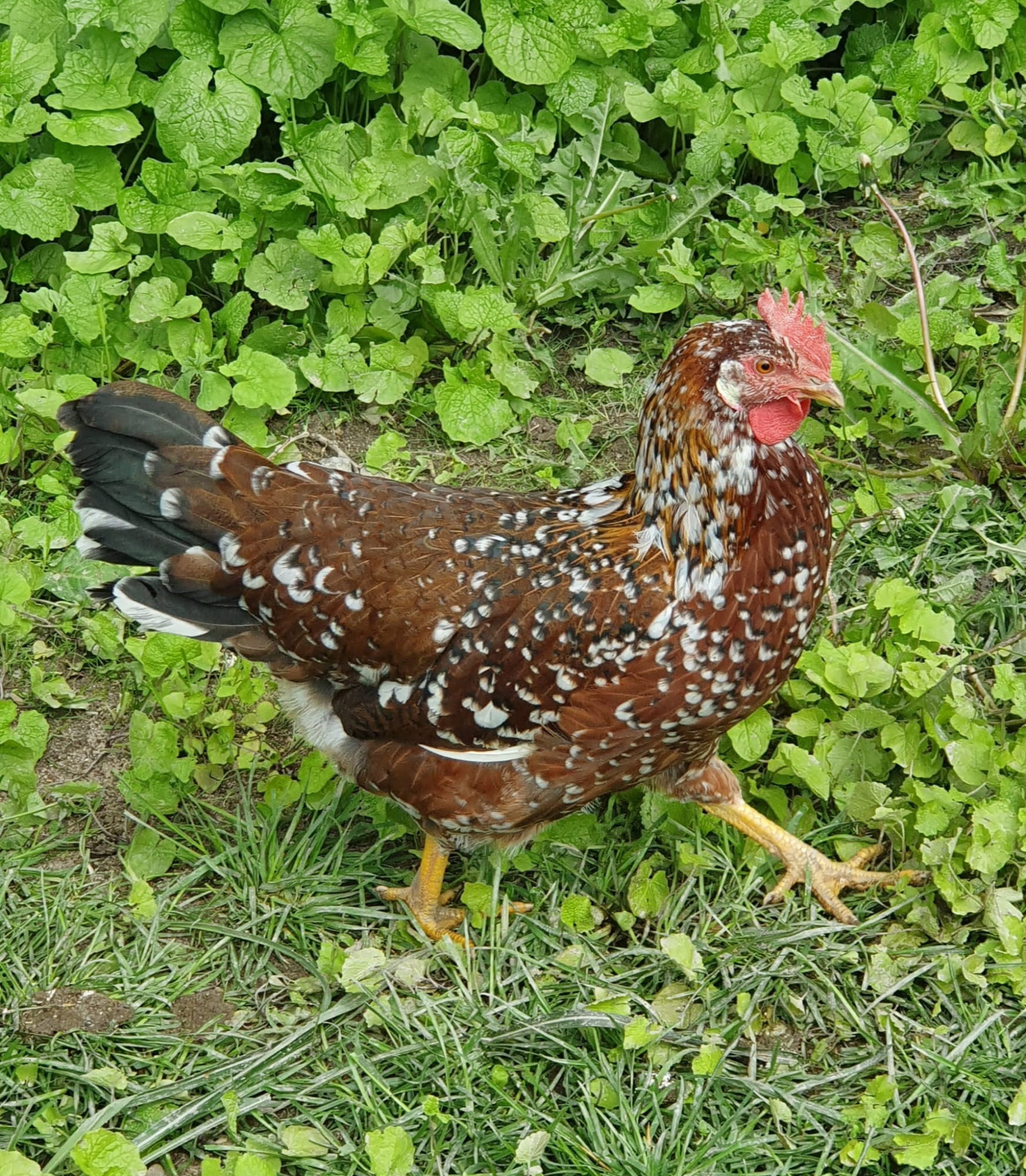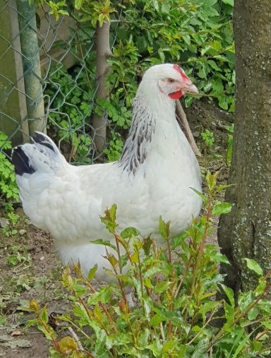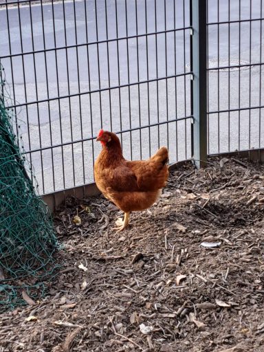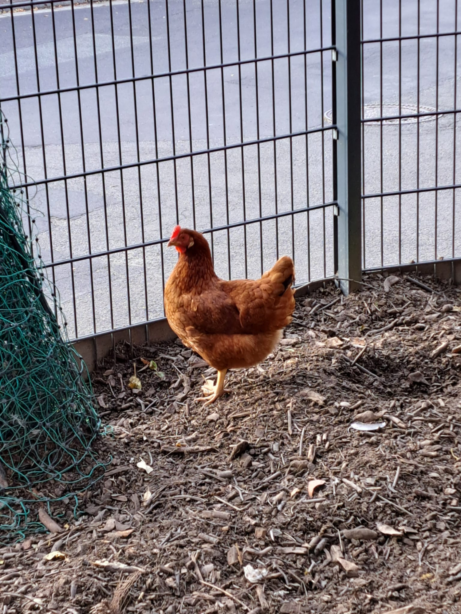 Um den Zoo zu komplettieren, befindet sich im Vorgarten zwischen Haus und Rossertstraße unser Hühnergehege, praktischerweise von beiden (Haus und Straße) einsehbar. Dort rennen, scharren, picken und gackern unsere bunte Hühnerschar herum, die wir regelmäßig besuchen, beobachten und füttern.